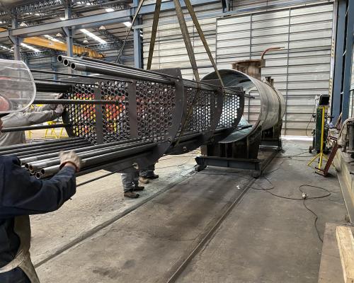 Fabricación y montaje de intercambiadores de calor tipo tubo y carcasa, incluyendo diseño, construcción y ensamblaje de haz tubular, carcasa, cabezales, boquillas y conexiones estructurales. Producción bajo normativa ASME Sección VIII y procedimientos de soldadura calificados, con control dimensional y pruebas de presión según especificación.